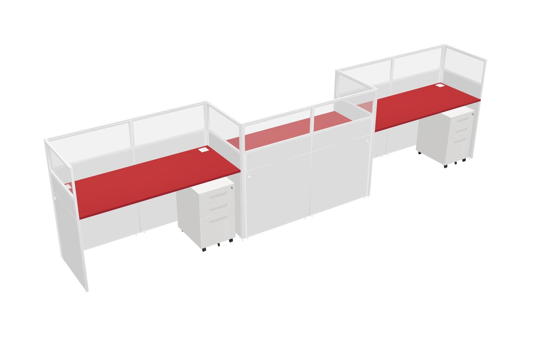 Prism Red Rectangular Cubicle Workstations For 3 - Zigzag Formation + White Metal Mobile Drawers