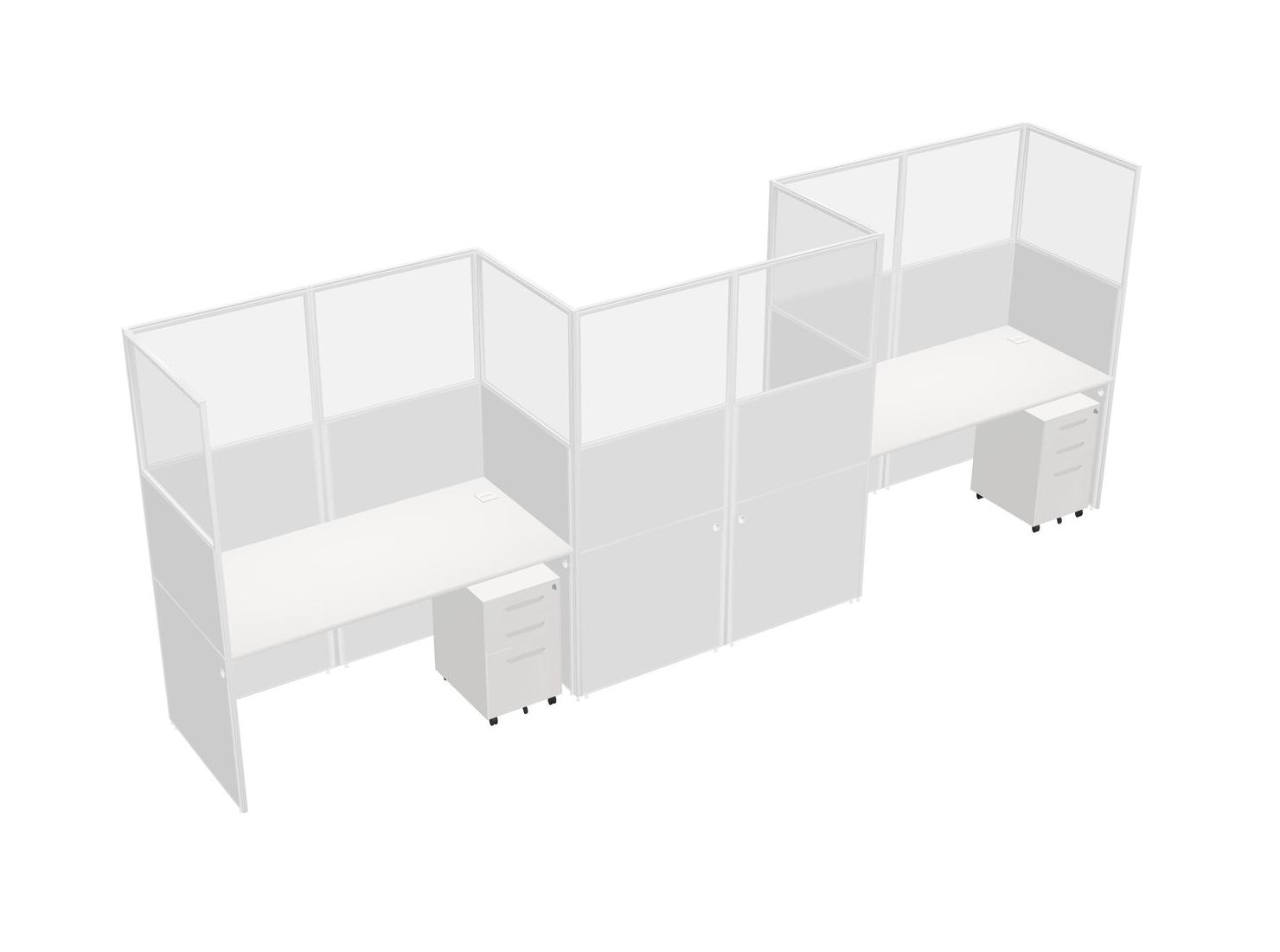 White Rectangular Cubicle Workstations For 3 - Zigzag Formation + White Metal Mobile Drawers