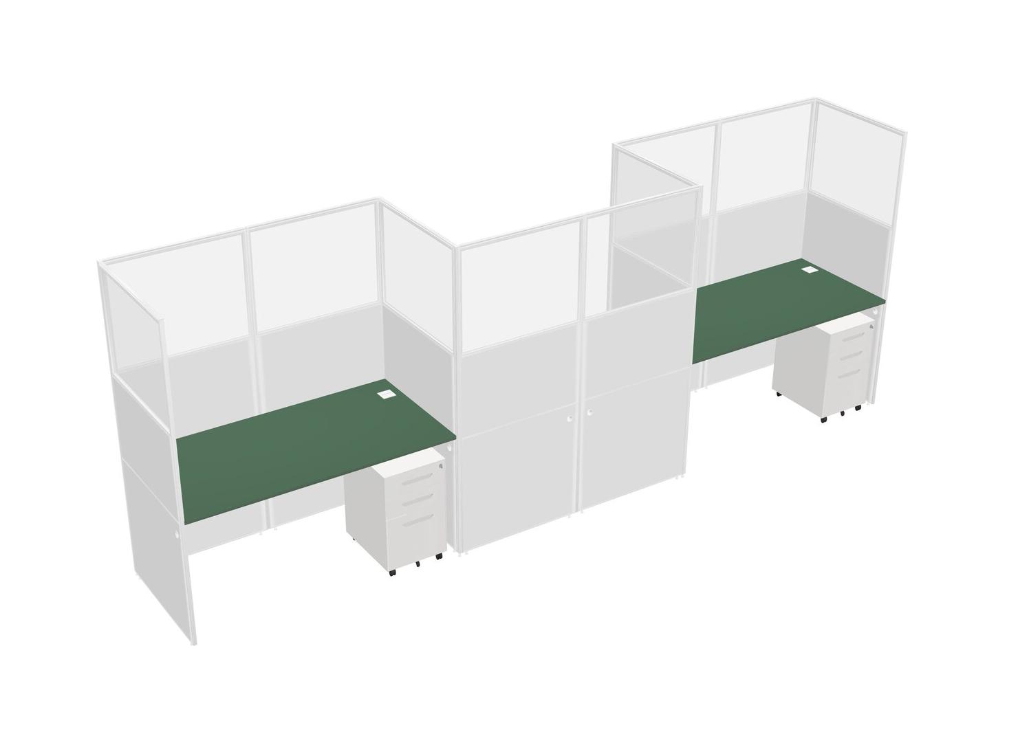 Green Rectangular Cubicle Workstations For 3 - Zigzag Formation + White Metal Mobile Drawers