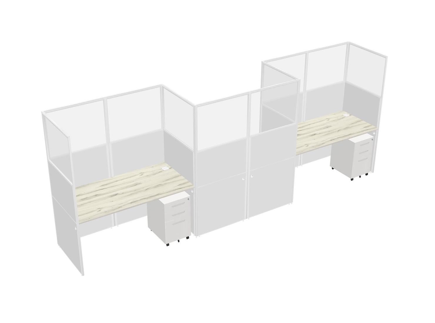 Heinne Holz Rectangular Cubicle Workstations For 3 - Zigzag Formation + White Metal Mobile Drawers