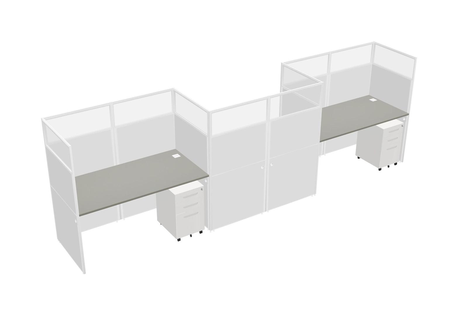 Grey Shadows Rectangular Cubicle Workstations For 3 - Zigzag Formation + White Metal Mobile Drawers