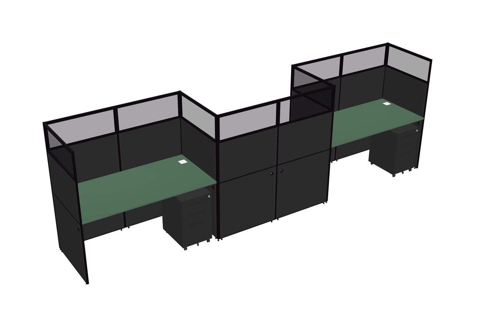 Green Rectangular Cubicle Workstations For 3 - Zigzag Formation + Black Metal Mobile Drawers