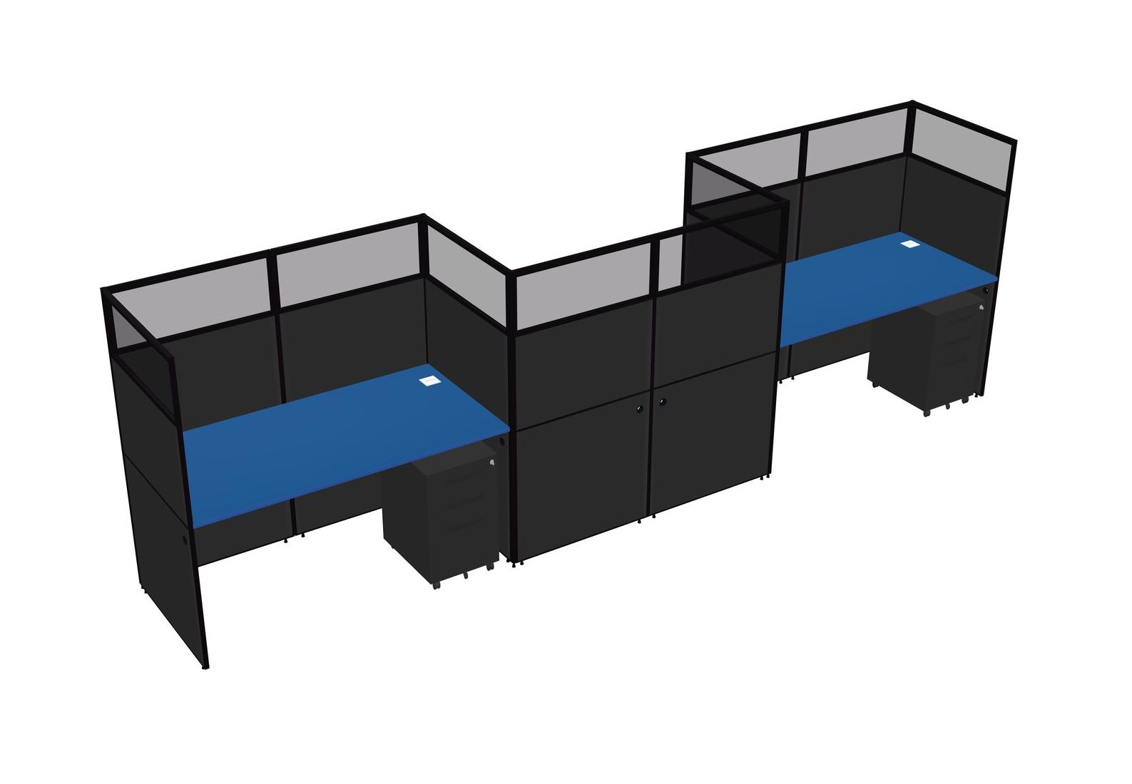 Prism Blue Rectangular Cubicle Workstations For 3 - Zigzag Formation + Black Metal Mobile Drawers