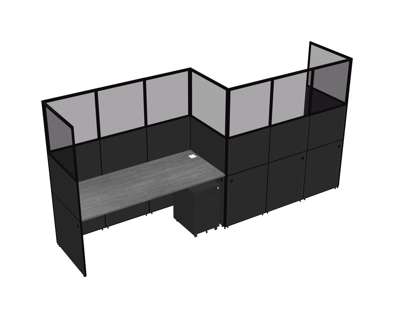 Grey Rectangular Cubicle Workstations For 2 - Zigzag Formation + Black Metal Mobile Drawers