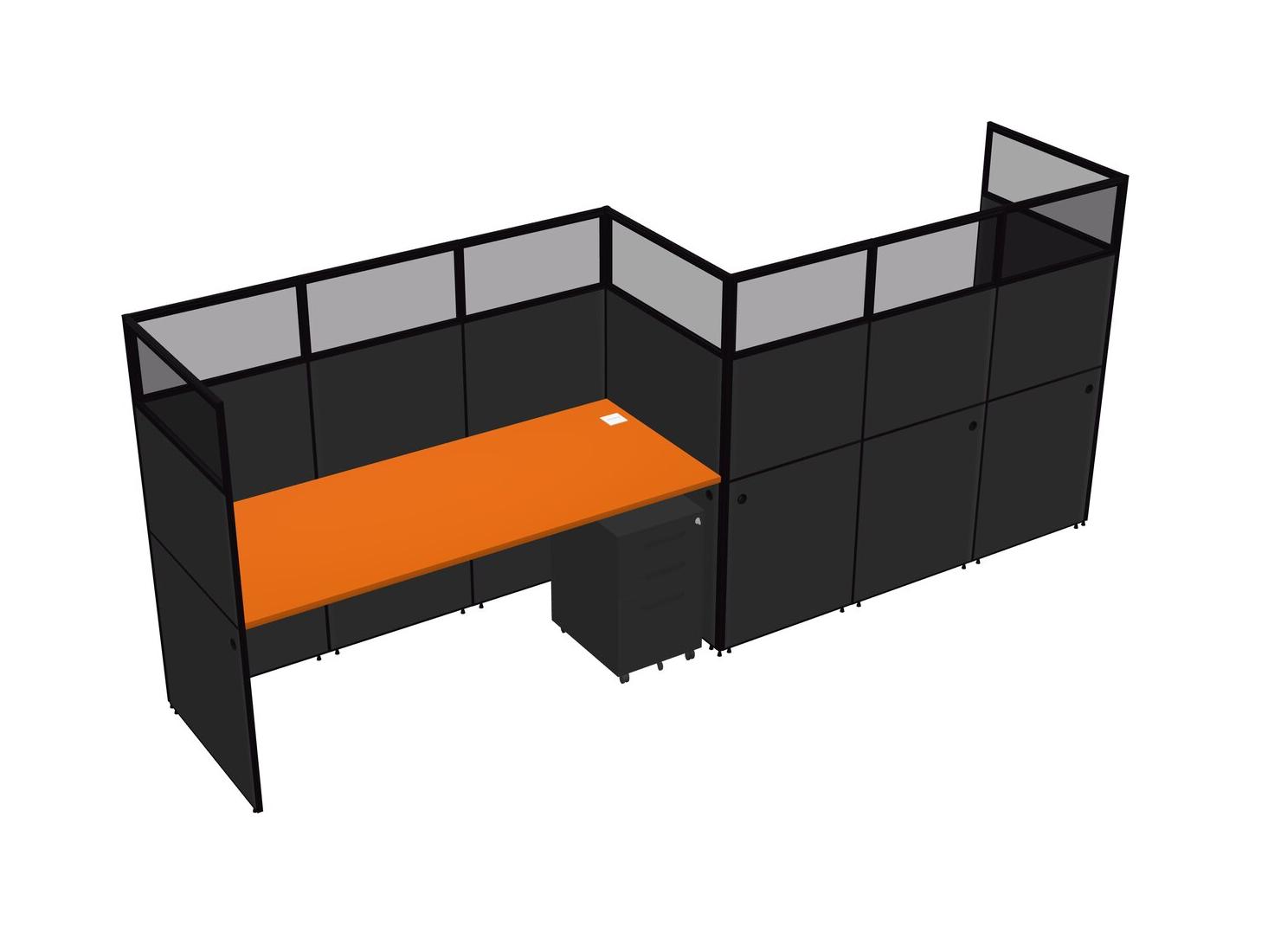 Orange Rectangular Cubicle Workstations For 2 - Zigzag Formation + Black Metal Mobile Drawers