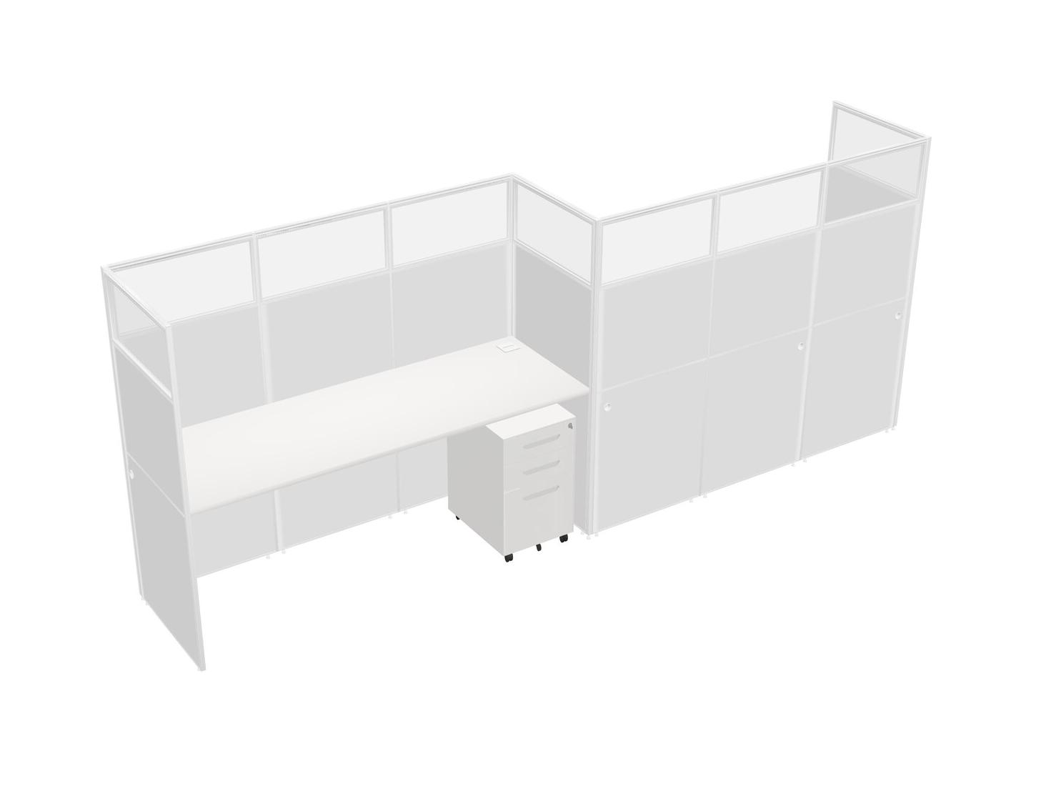 White Rectangular Cubicle Workstations For 2 - Zigzag Formation + White Metal Mobile Drawers