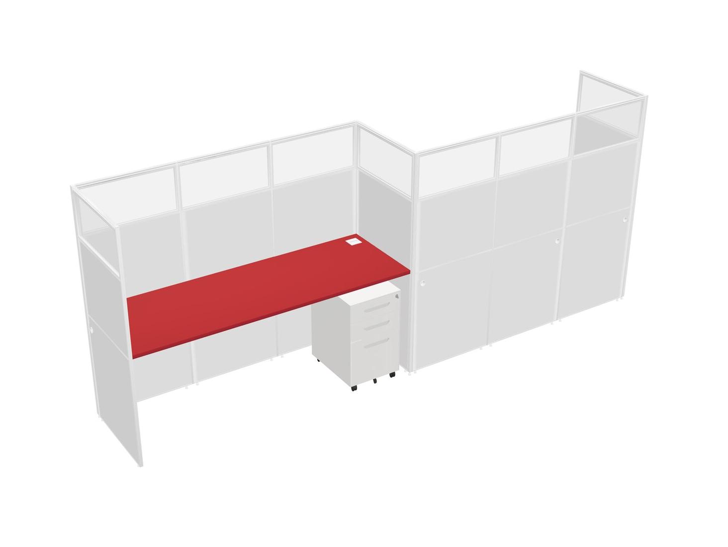 Prism Red Rectangular Cubicle Workstations For 2 - Zigzag Formation + White Metal Mobile Drawers