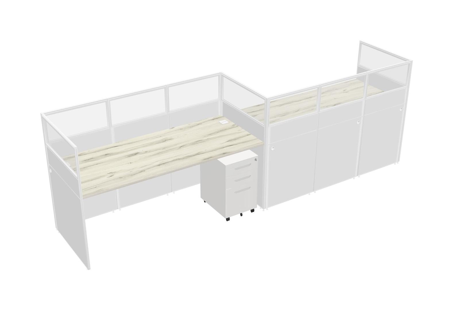 Heinne Holz Rectangular Cubicle Workstations For 2 - Zigzag Formation + White Metal Mobile Drawers