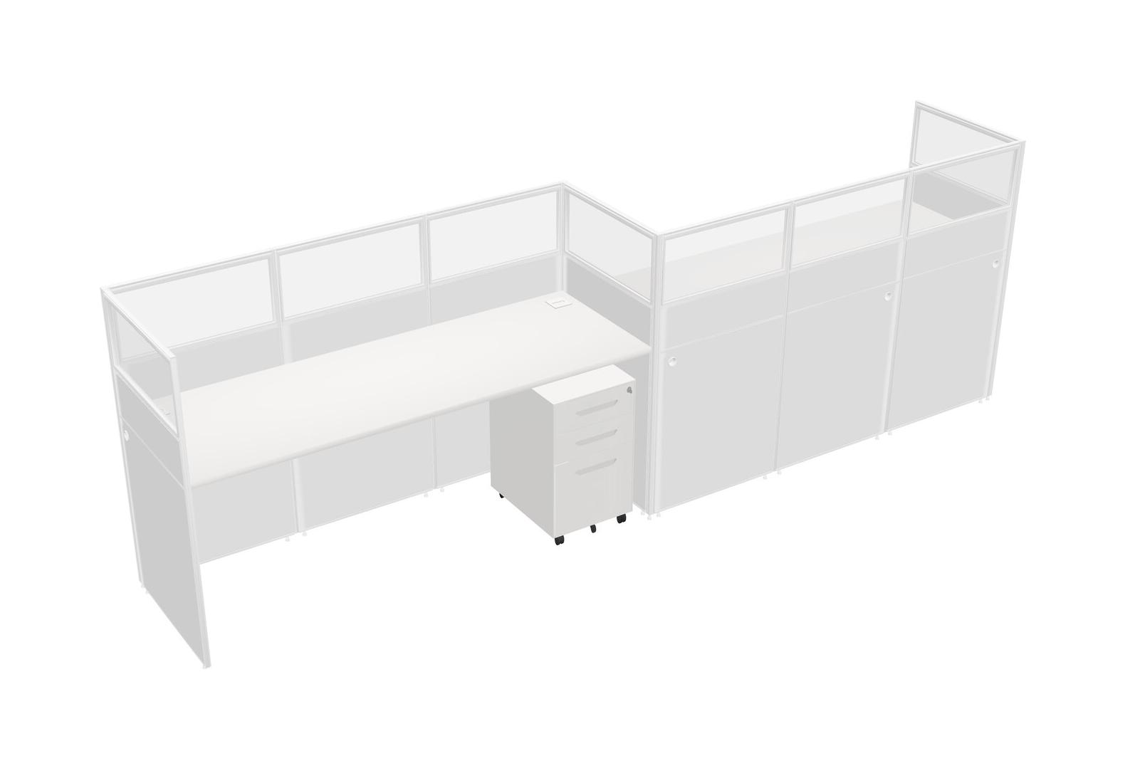 White Rectangular Cubicle Workstations For 2 - Zigzag Formation + White Metal Mobile Drawers