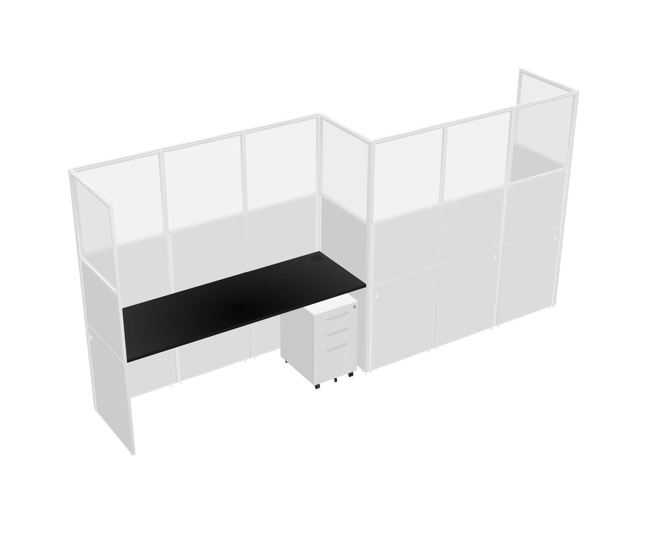 Black Rectangular Cubicle Workstations For 2 - Zigzag Formation + White Metal Mobile Drawers