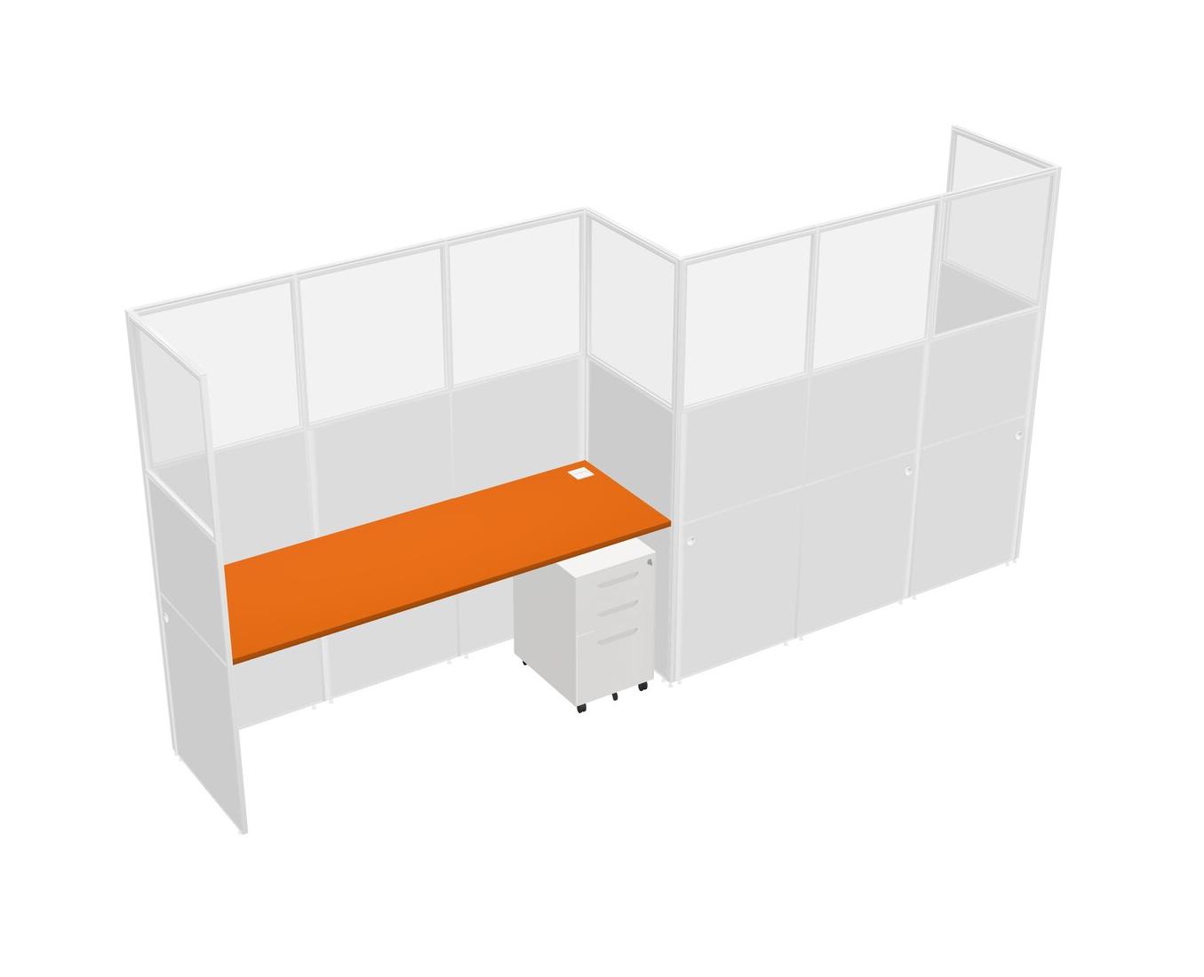 Orange Rectangular Cubicle Workstations For 2 - Zigzag Formation + White Metal Mobile Drawers