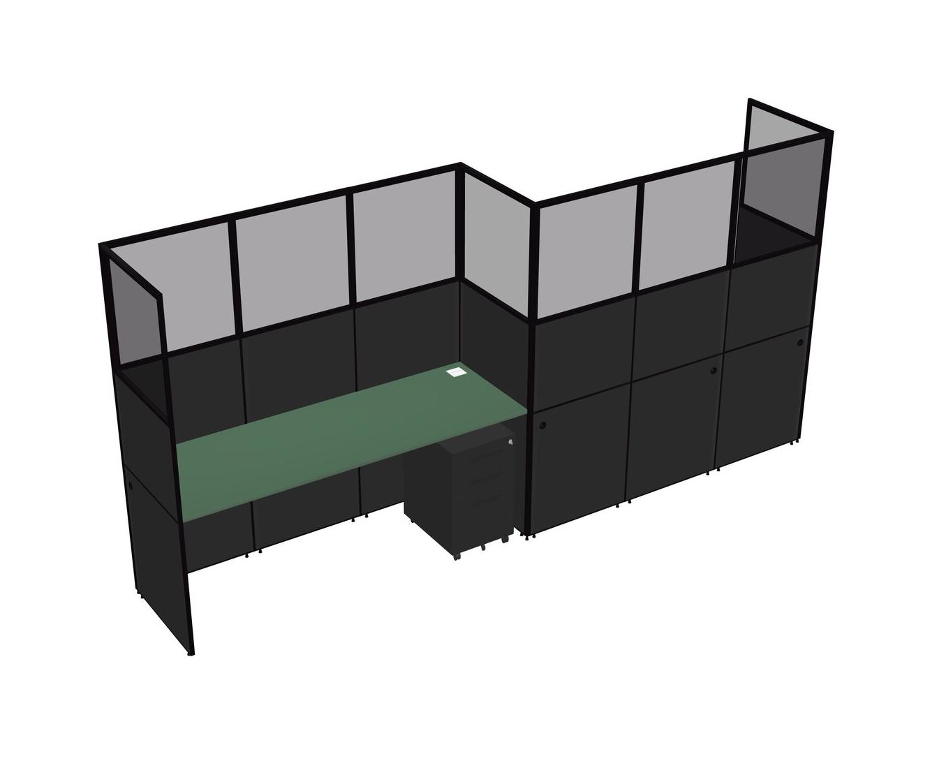 Green Rectangular Cubicle Workstations For 2 - Zigzag Formation + Black Metal Mobile Drawers