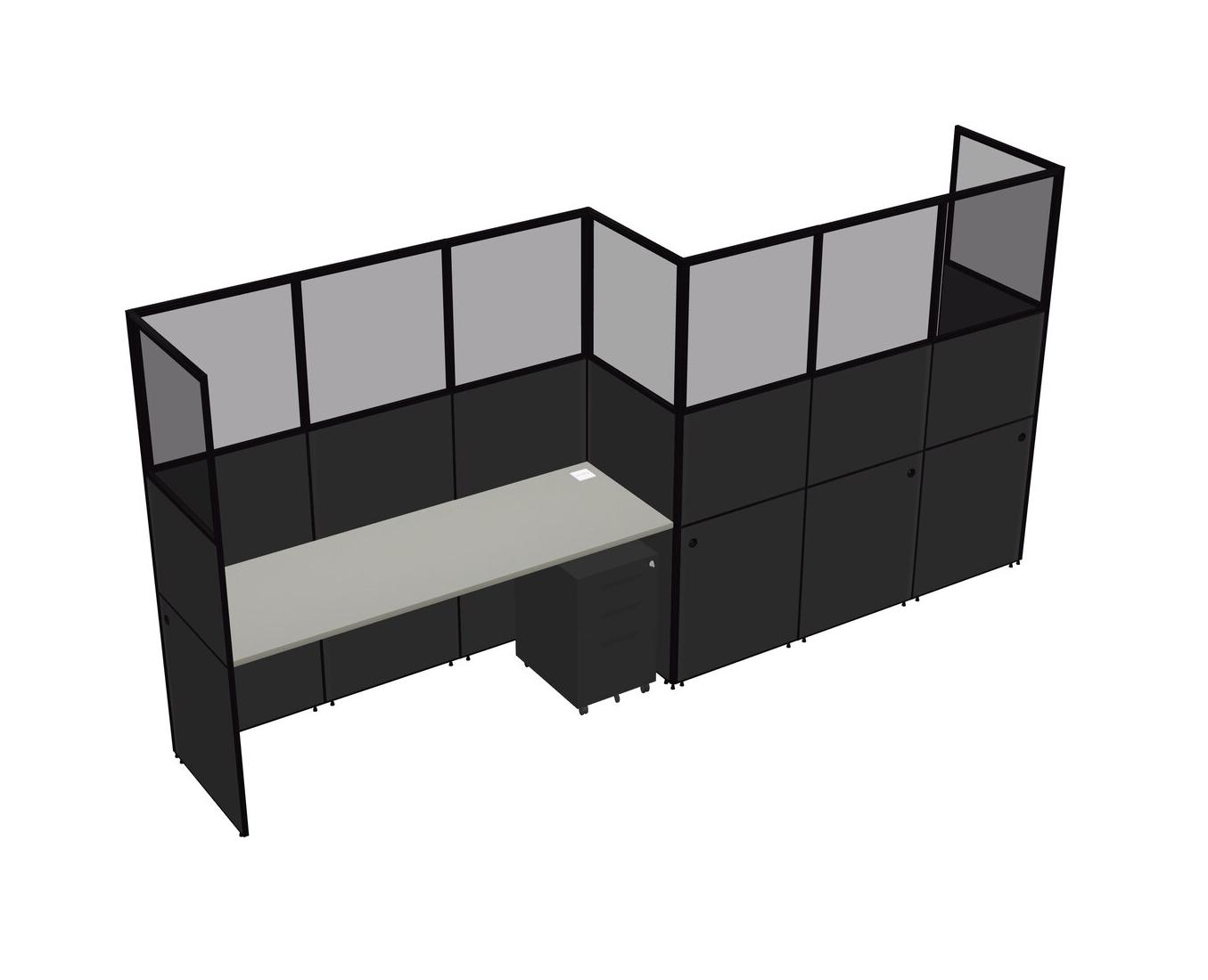 Grey Shadows Rectangular Cubicle Workstations For 2 - Zigzag Formation + Black Metal Mobile Drawers