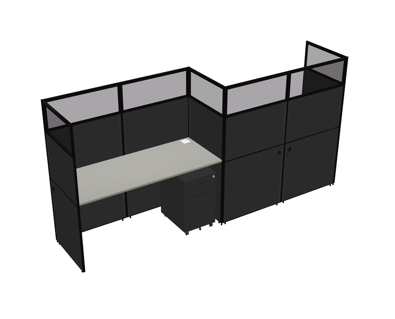Grey Shadows Rectangular Cubicle Workstations For 2 - Zigzag Formation + Black Metal Mobile Drawers