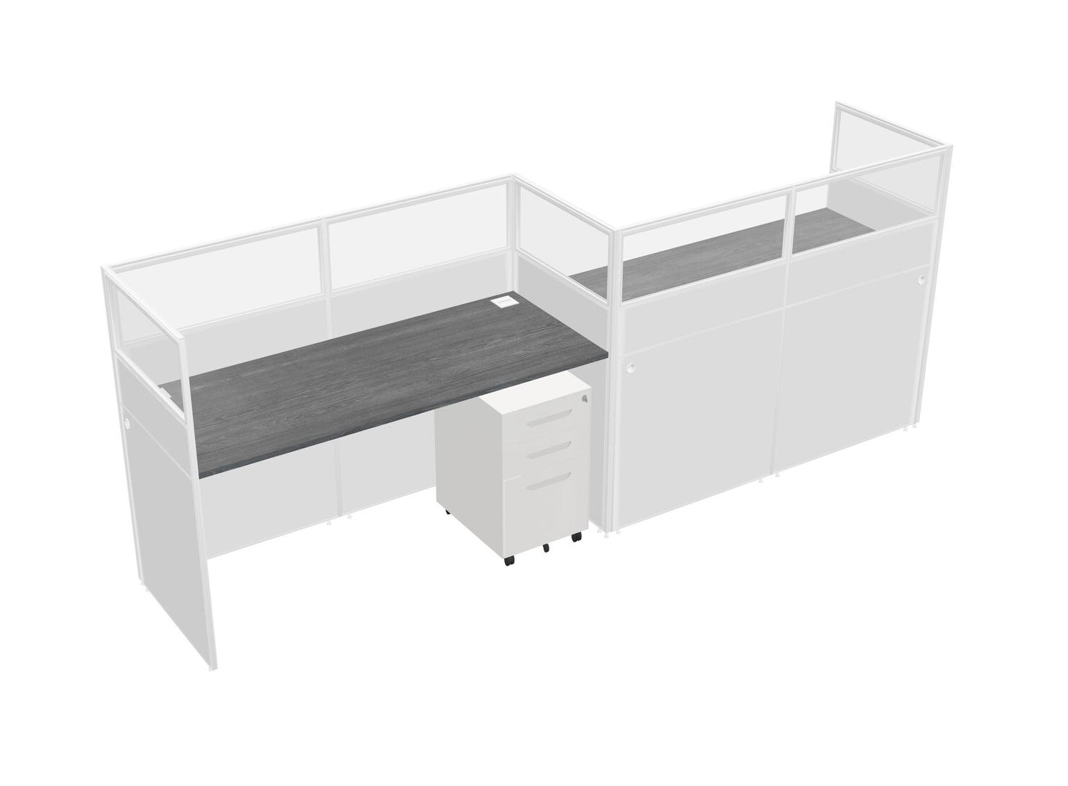 Grey Rectangular Cubicle Workstations For 2 - Zigzag Formation + White Metal Mobile Drawers