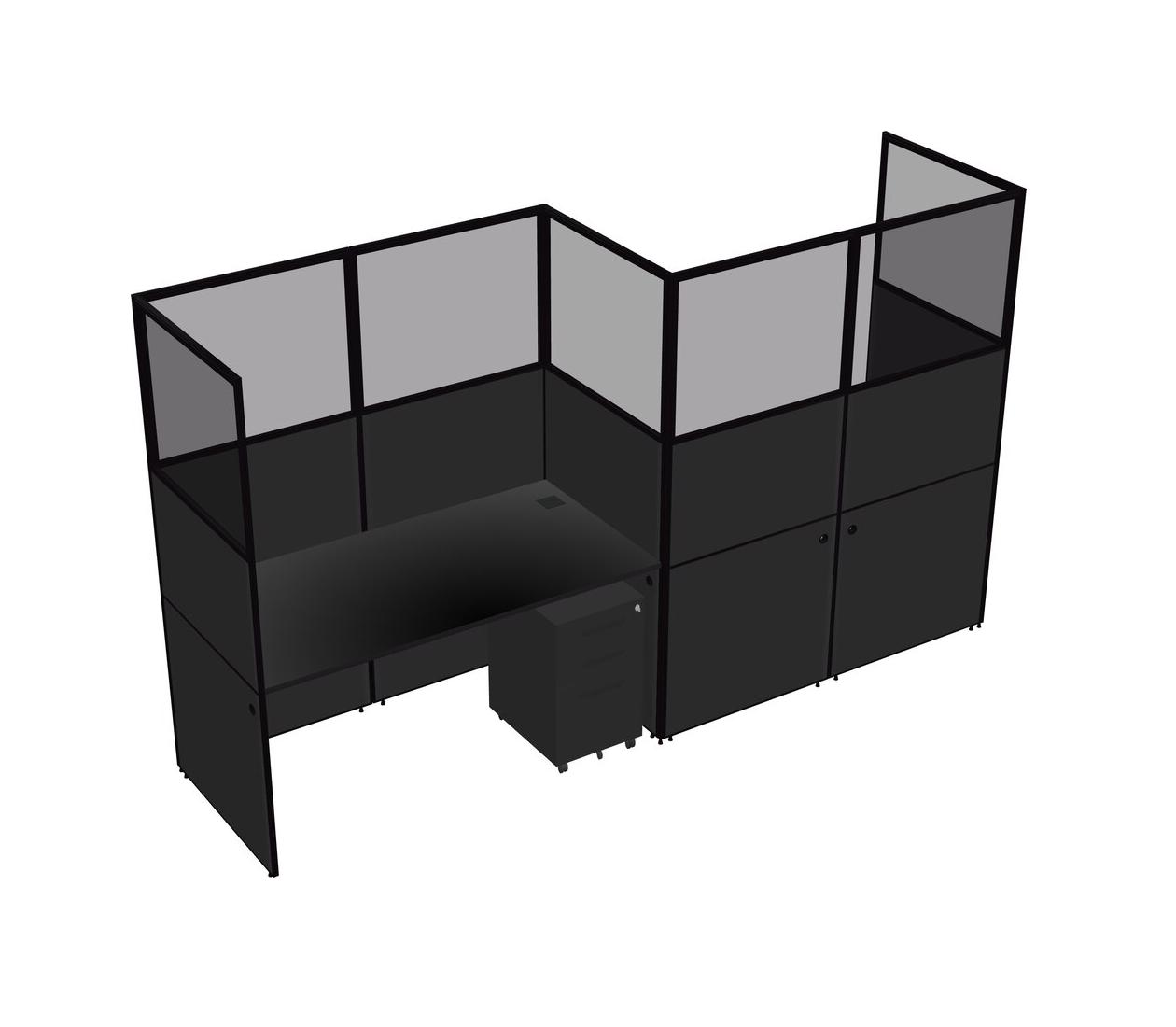 Black Rectangular Cubicle Workstations For 2 - Zigzag Formation + Black Metal Mobile Drawers