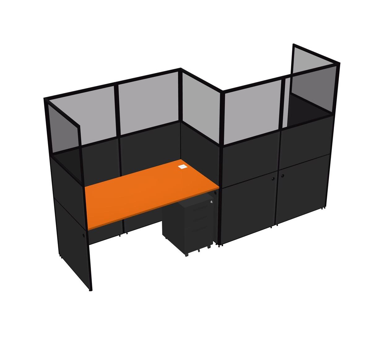 Orange Rectangular Cubicle Workstations For 2 - Zigzag Formation + Black Metal Mobile Drawers