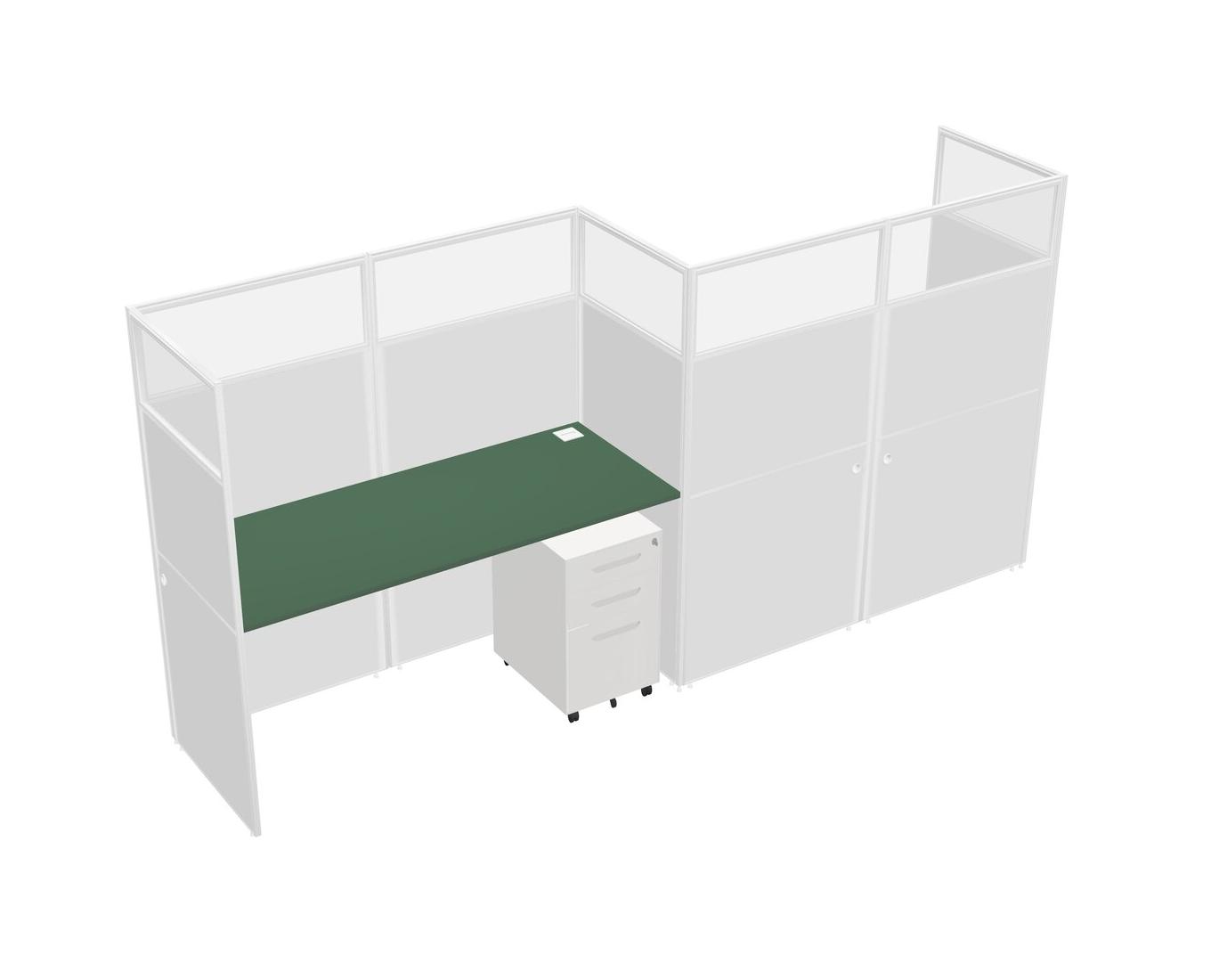 Green Rectangular Cubicle Workstations For 2 - Zigzag Formation + White Metal Mobile Drawers