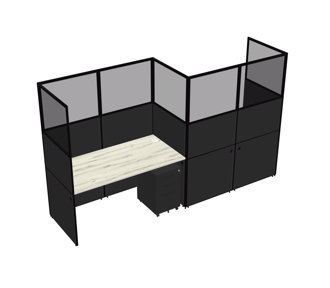 Heinne Holz Rectangular Cubicle Workstations For 2 - Zigzag Formation + Black Metal Mobile Drawers