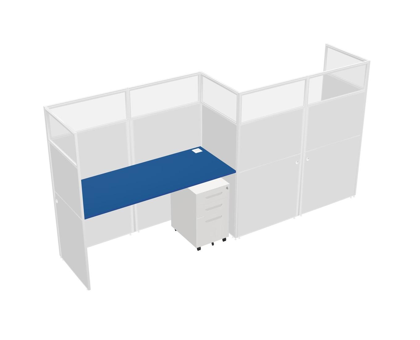 Prism Blue Rectangular Cubicle Workstations For 2 - Zigzag Formation + White Metal Mobile Drawers