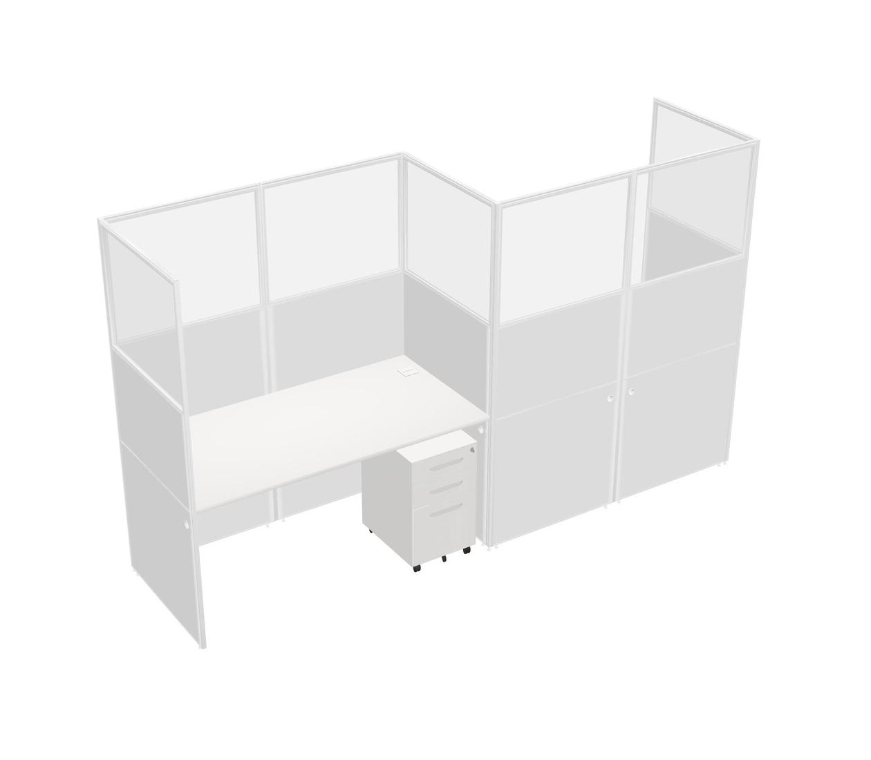White Rectangular Cubicle Workstations For 2 - Zigzag Formation + White Metal Mobile Drawers