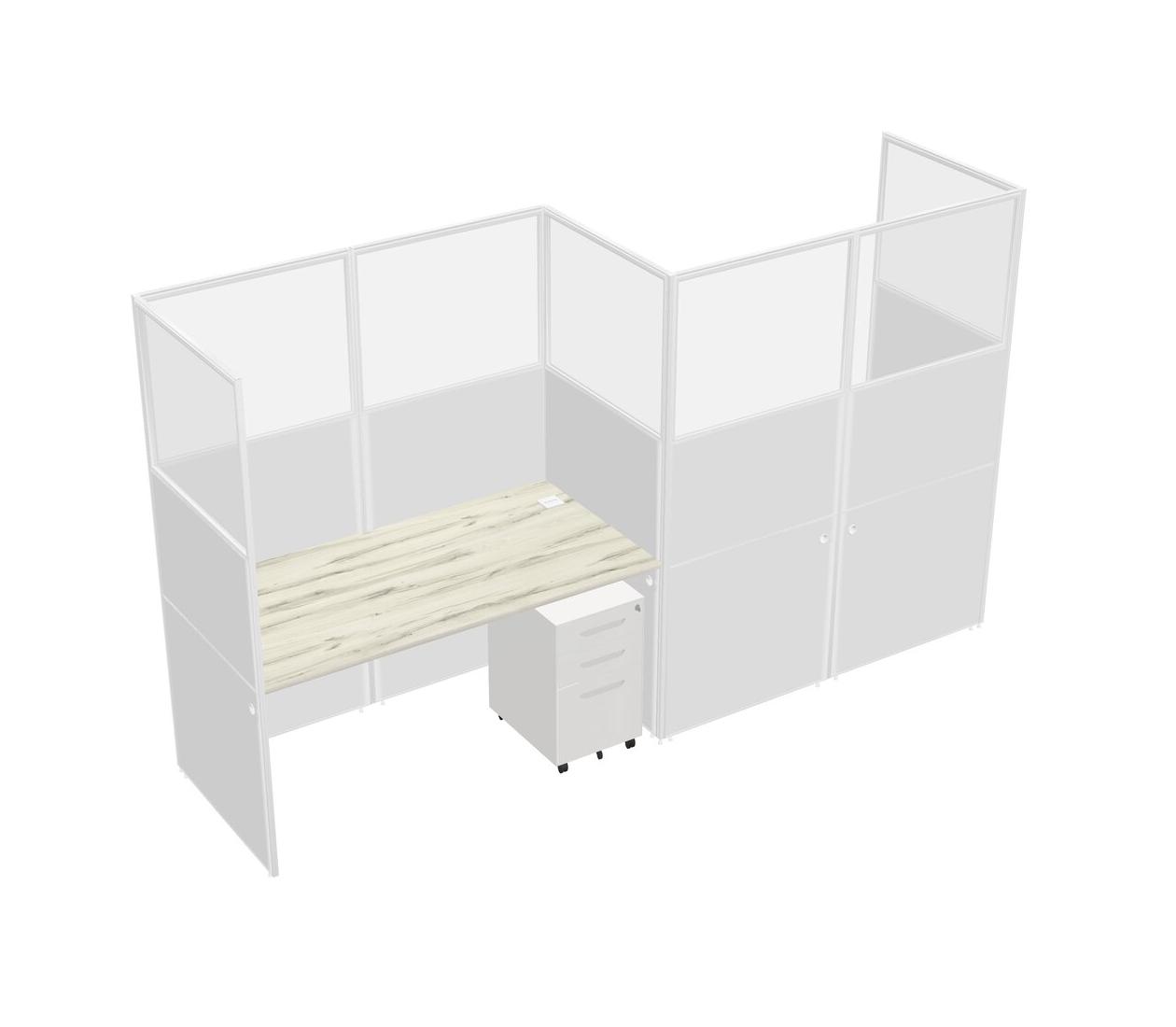 Heinne Holz Rectangular Cubicle Workstations For 2 - Zigzag Formation + White Metal Mobile Drawers