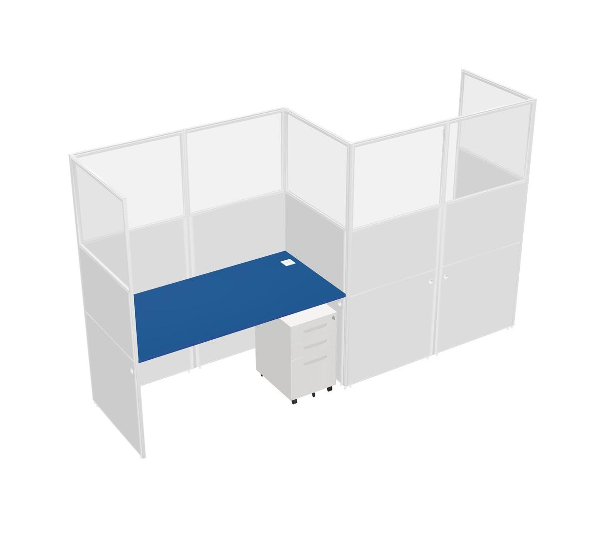 Prism Blue Rectangular Cubicle Workstations For 2 - Zigzag Formation + White Metal Mobile Drawers