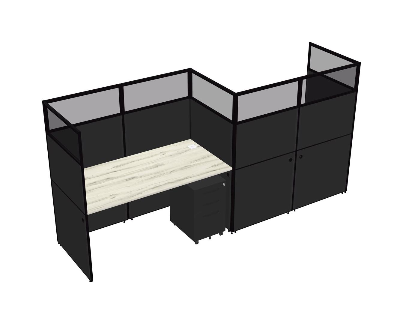 Heinne Holz Rectangular Cubicle Workstations For 2 - Zigzag Formation + Black Metal Mobile Drawers