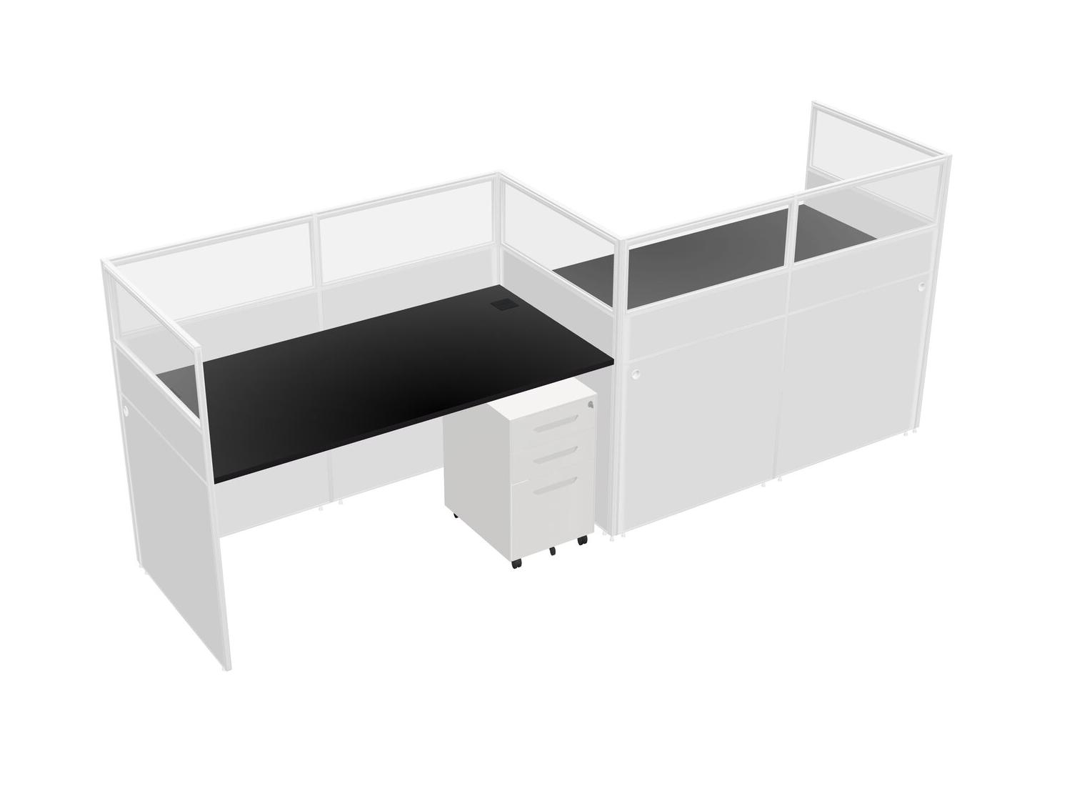 Black Rectangular Cubicle Workstations For 2 - Zigzag Formation + White Metal Mobile Drawers