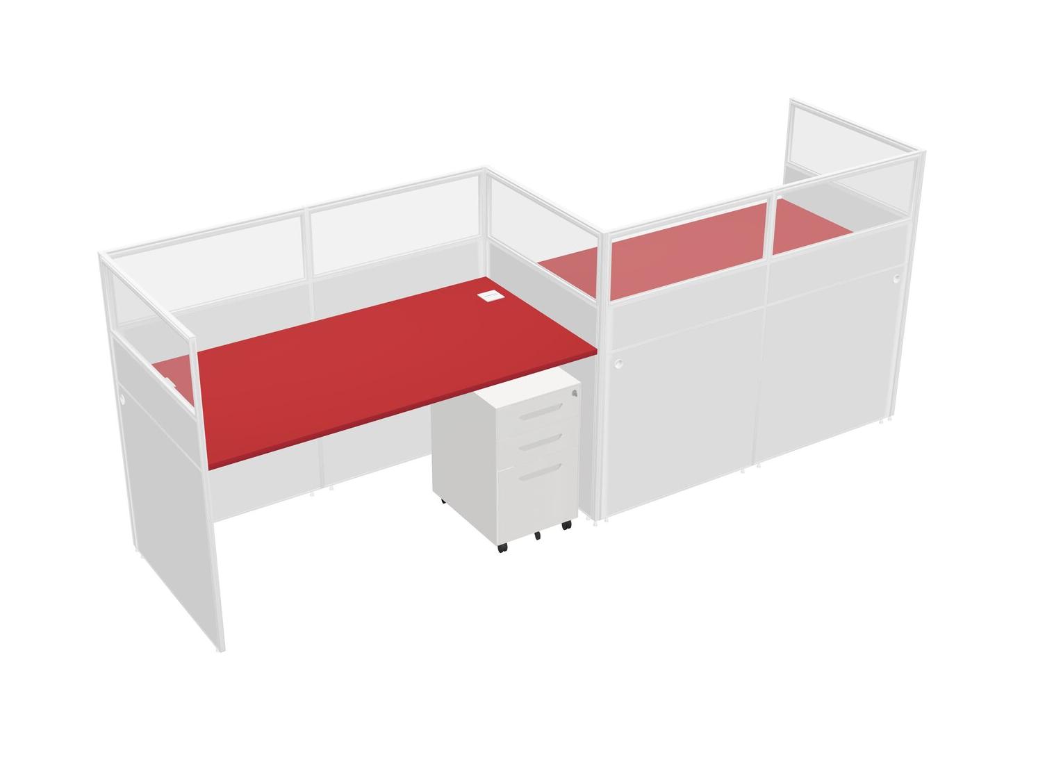 Prism Red Rectangular Cubicle Workstations For 2 - Zigzag Formation + White Metal Mobile Drawers