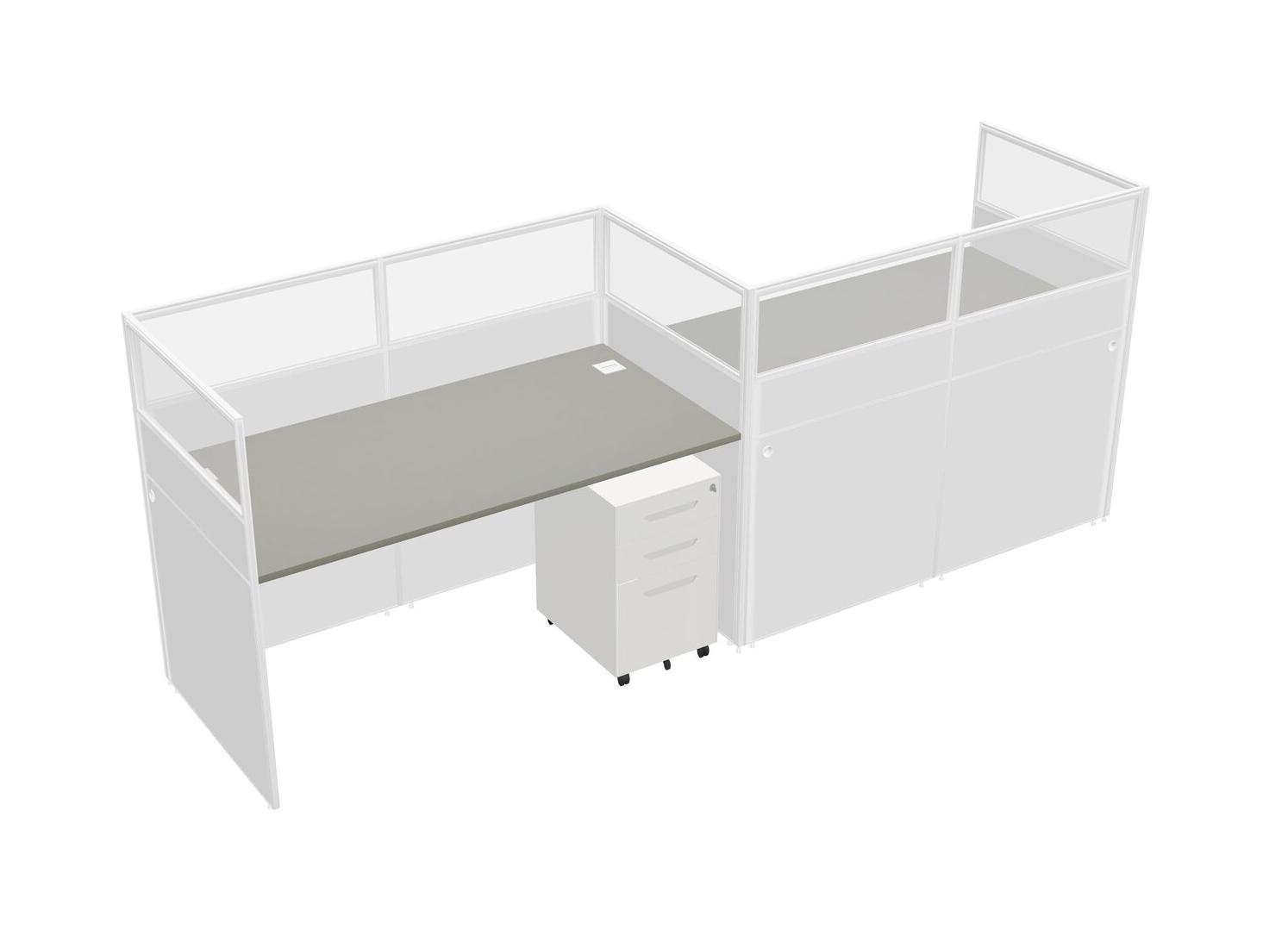 Grey Shadows Rectangular Cubicle Workstations For 2 - Zigzag Formation + White Metal Mobile Drawers