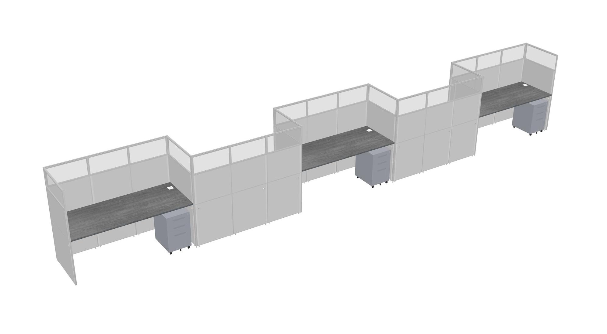 Grey Rectangular Cubicle Workstations For 5 - Zigzag Formation + Grey Metal Mobile Drawers