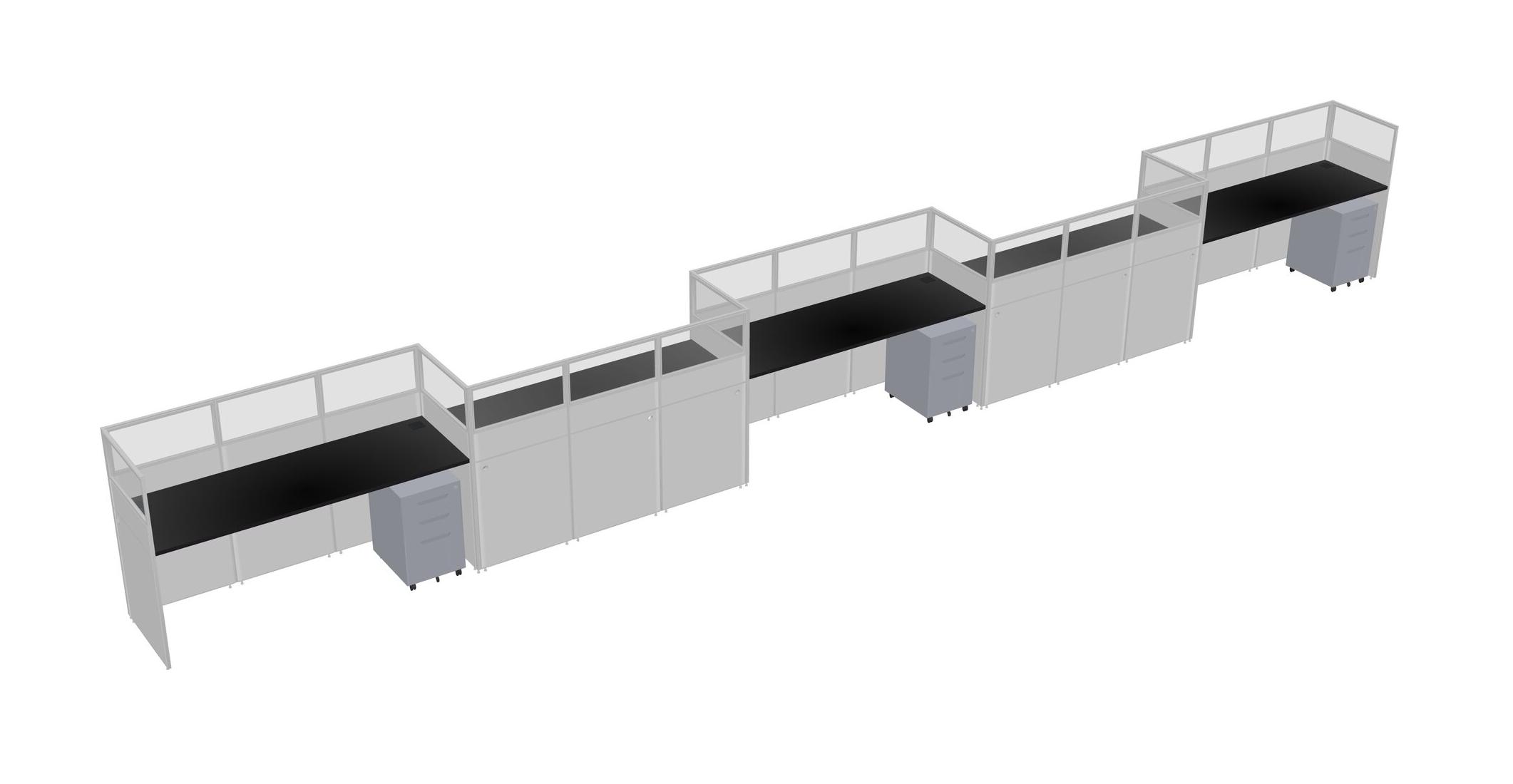 Black Rectangular Cubicle Workstations For 5 - Zigzag Formation + Grey Metal Mobile Drawers