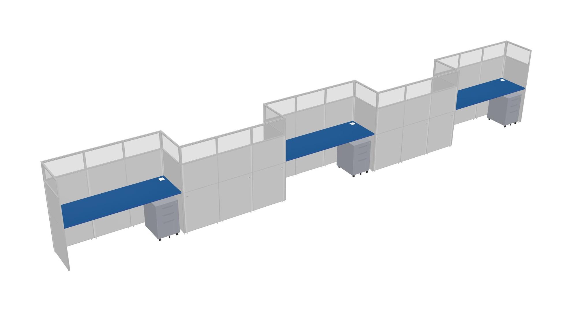 Prism Blue Rectangular Cubicle Workstations For 5 - Zigzag Formation + Grey Metal Mobile Drawers