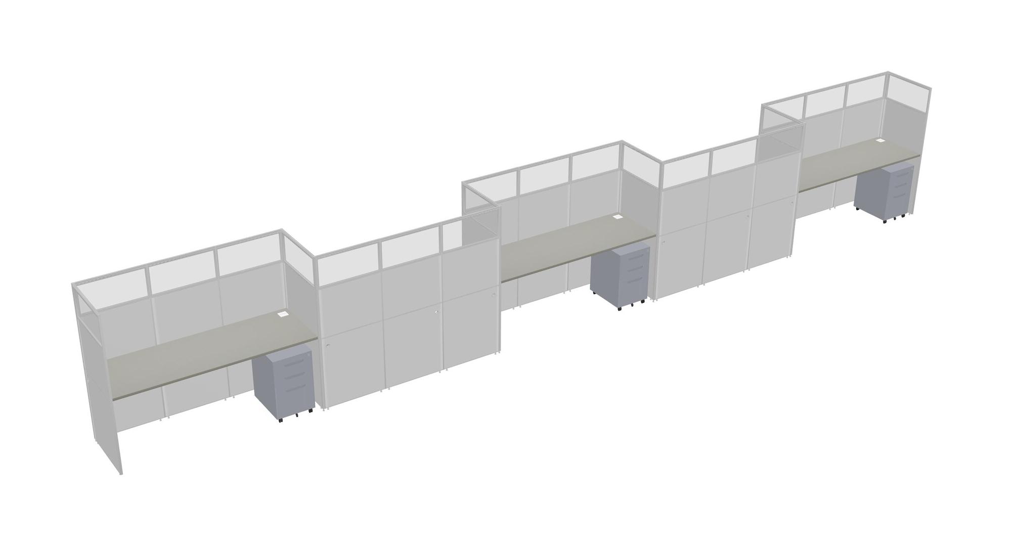 Grey Shadows Rectangular Cubicle Workstations For 5 - Zigzag Formation + Grey Metal Mobile Drawers