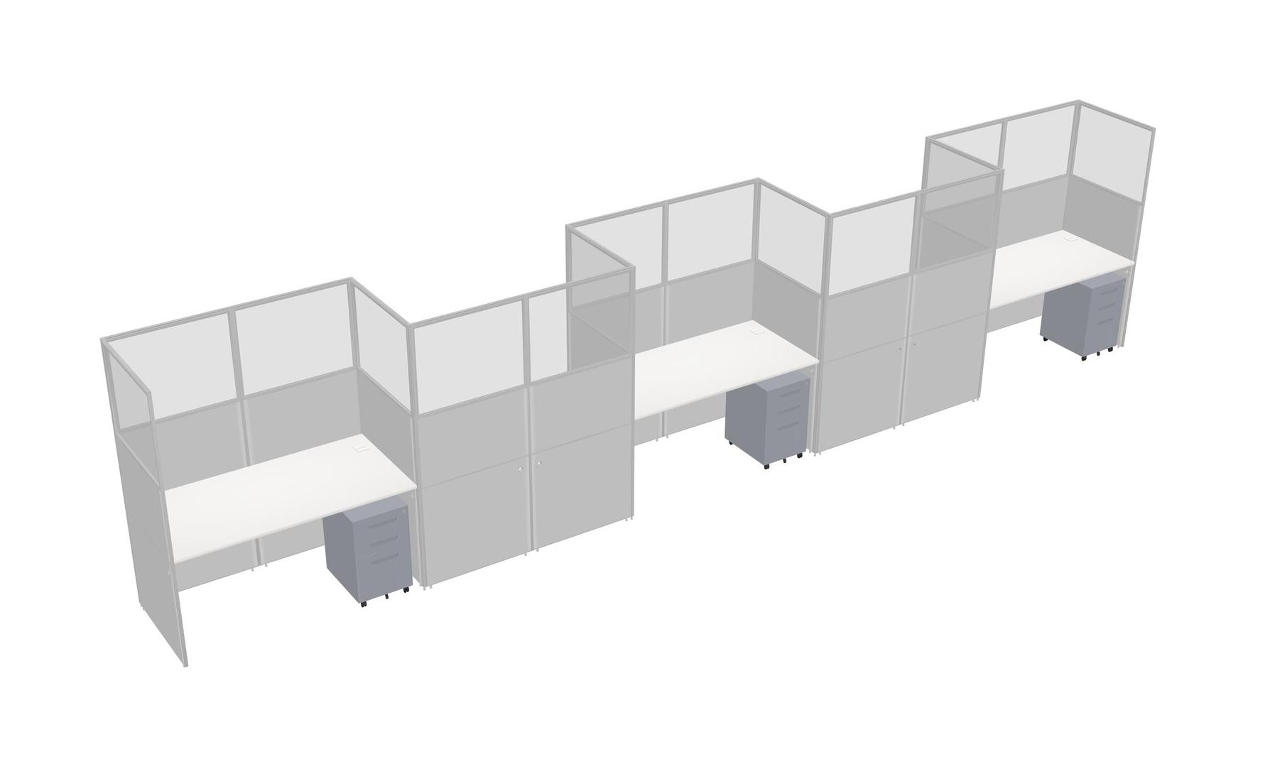 White Rectangular Cubicle Workstations For 5 - Zigzag Formation + Grey Metal Mobile Drawers
