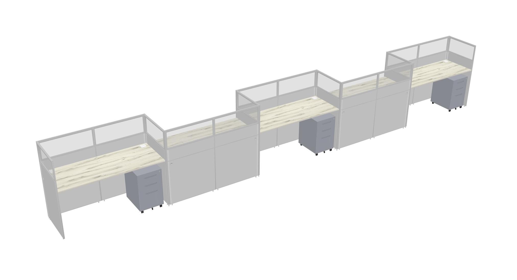 Heinne Holz Rectangular Cubicle Workstations For 5 - Zigzag Formation + Grey Metal Mobile Drawers