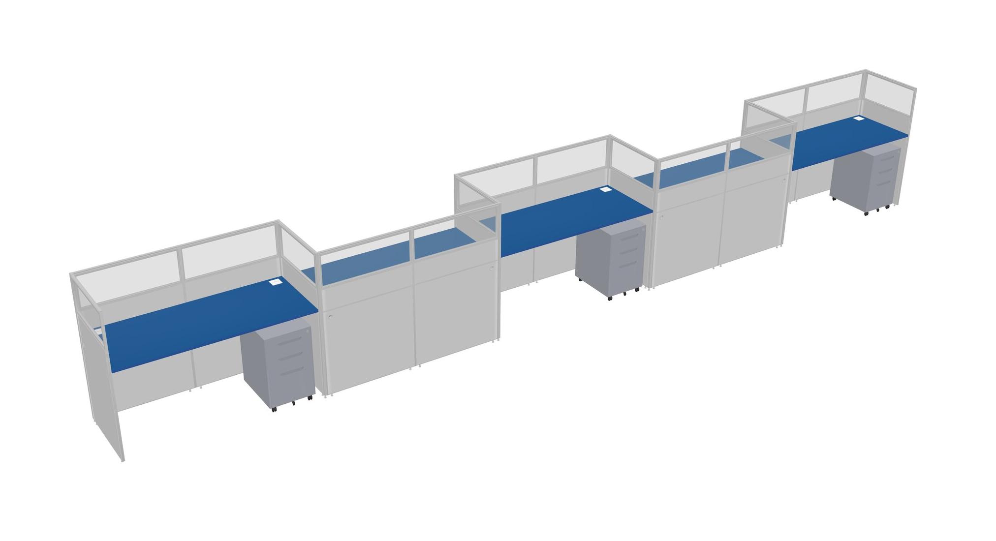 Prism Blue Rectangular Cubicle Workstations For 5 - Zigzag Formation + Grey Metal Mobile Drawers