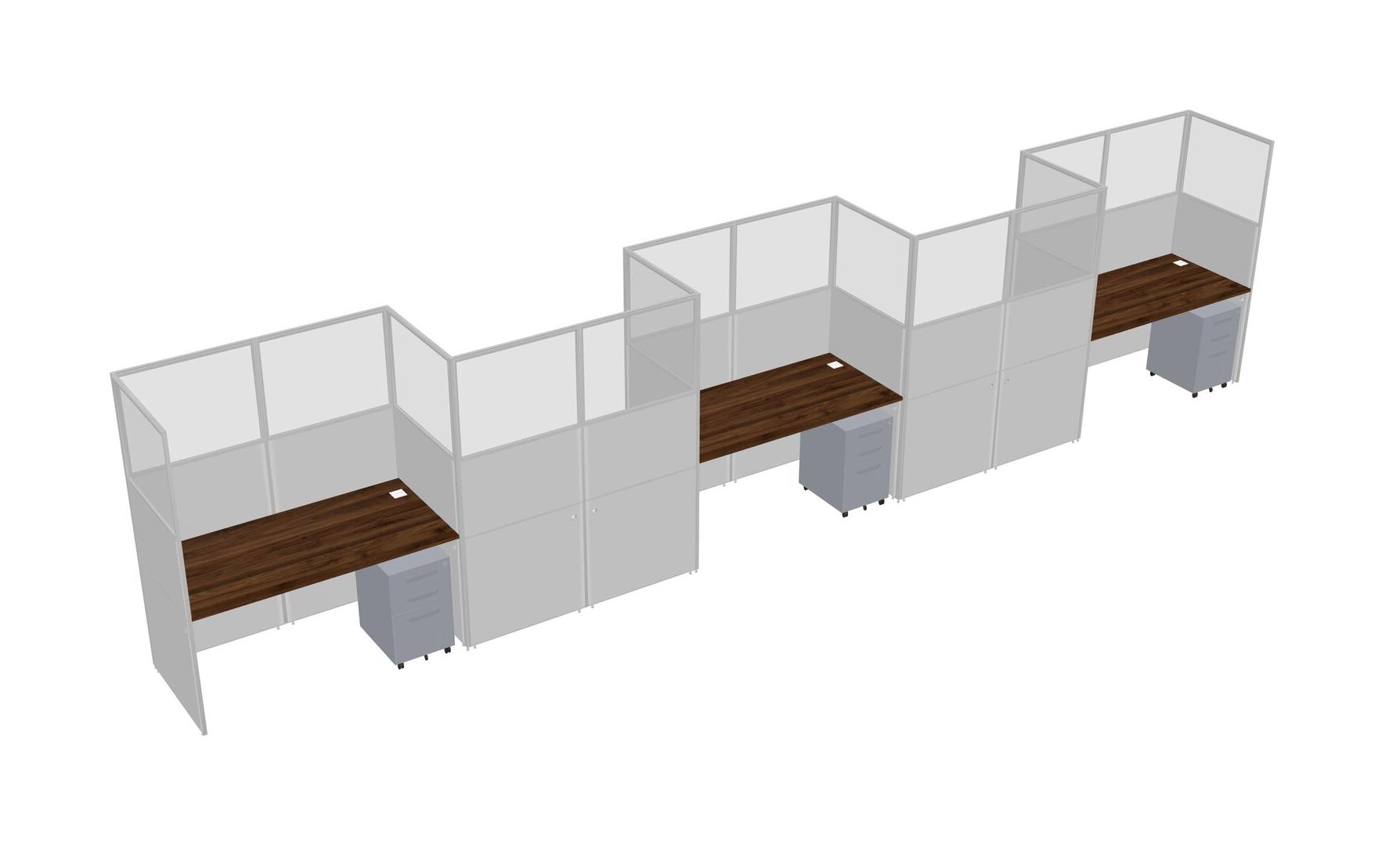 Columbia Walnut Rectangular Cubicle Workstations For 5 - Zigzag Formation + Grey Metal Mobile Drawers