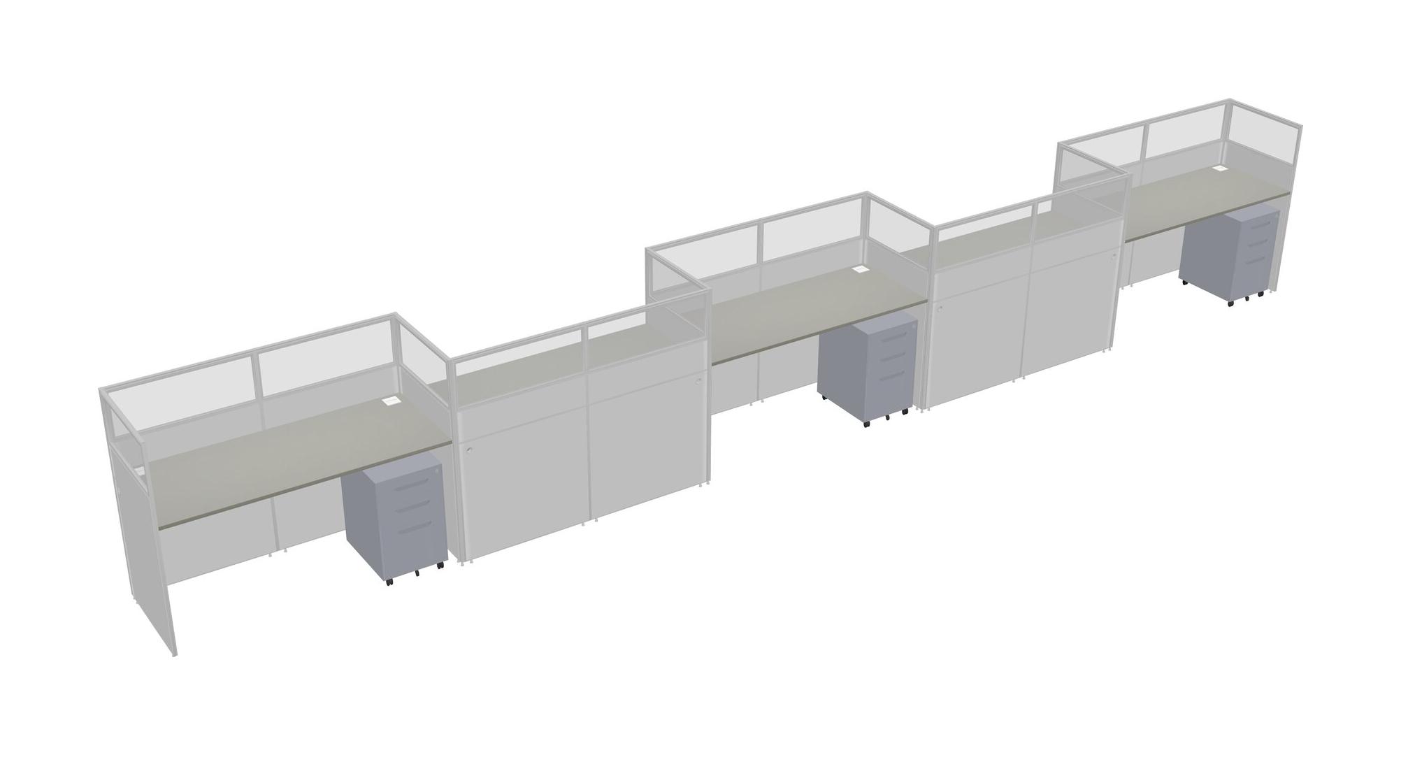 Grey Shadows Rectangular Cubicle Workstations For 5 - Zigzag Formation + Grey Metal Mobile Drawers