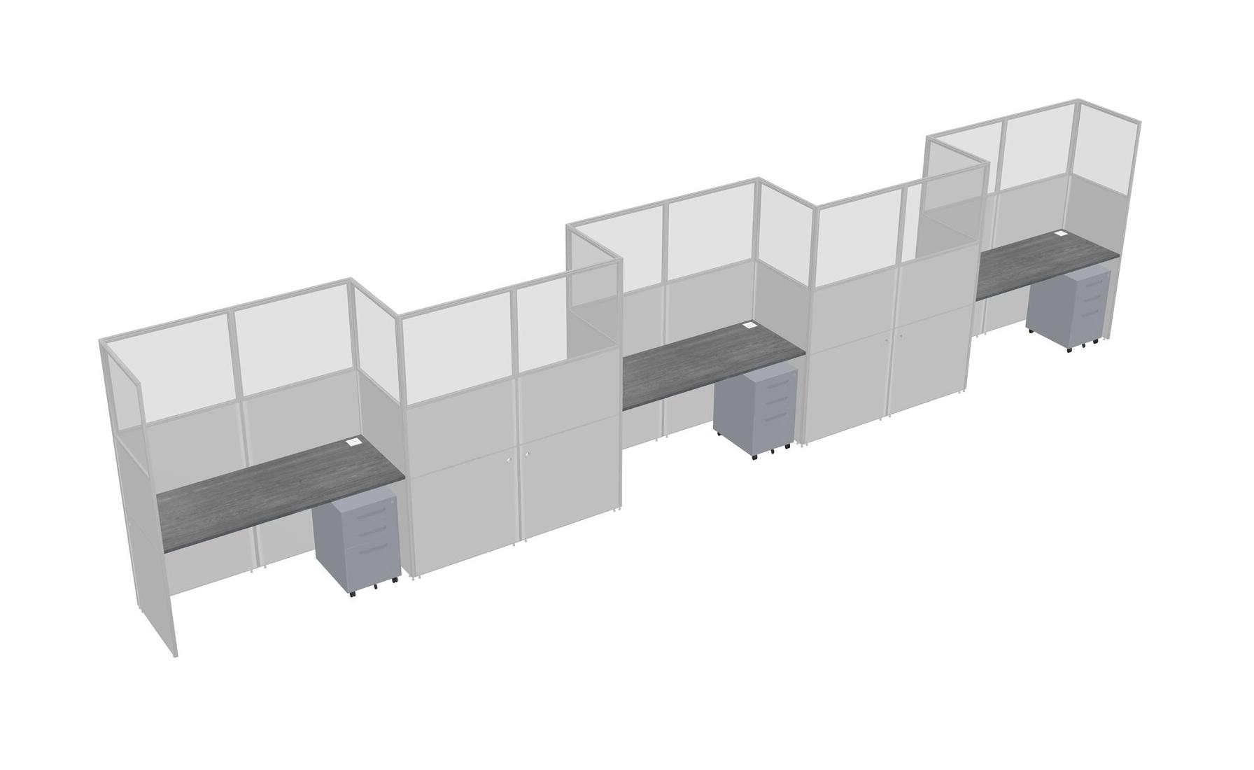 Grey Rectangular Cubicle Workstations For 5 - Zigzag Formation + Grey Metal Mobile Drawers
