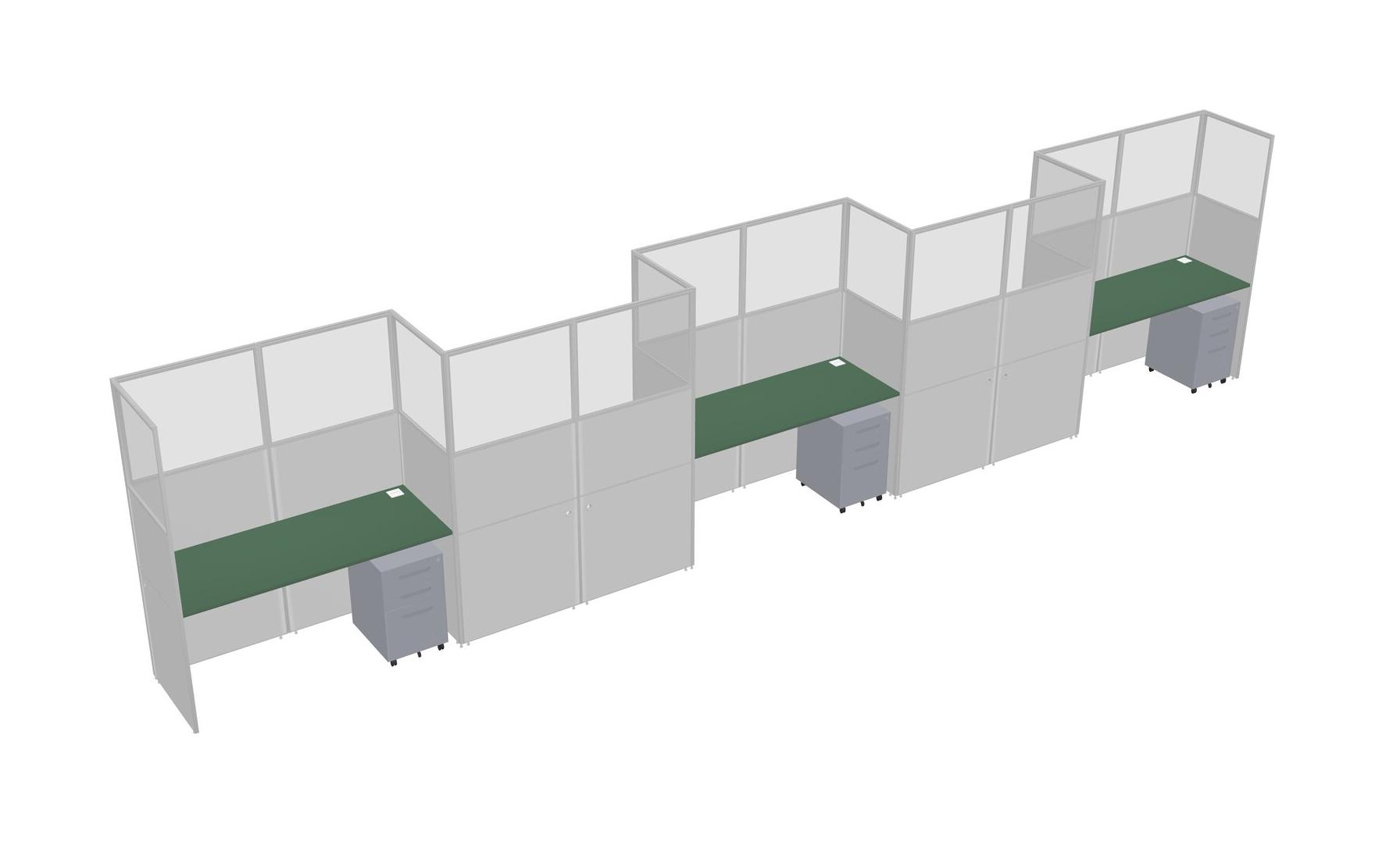 Green Rectangular Cubicle Workstations For 5 - Zigzag Formation + Grey Metal Mobile Drawers