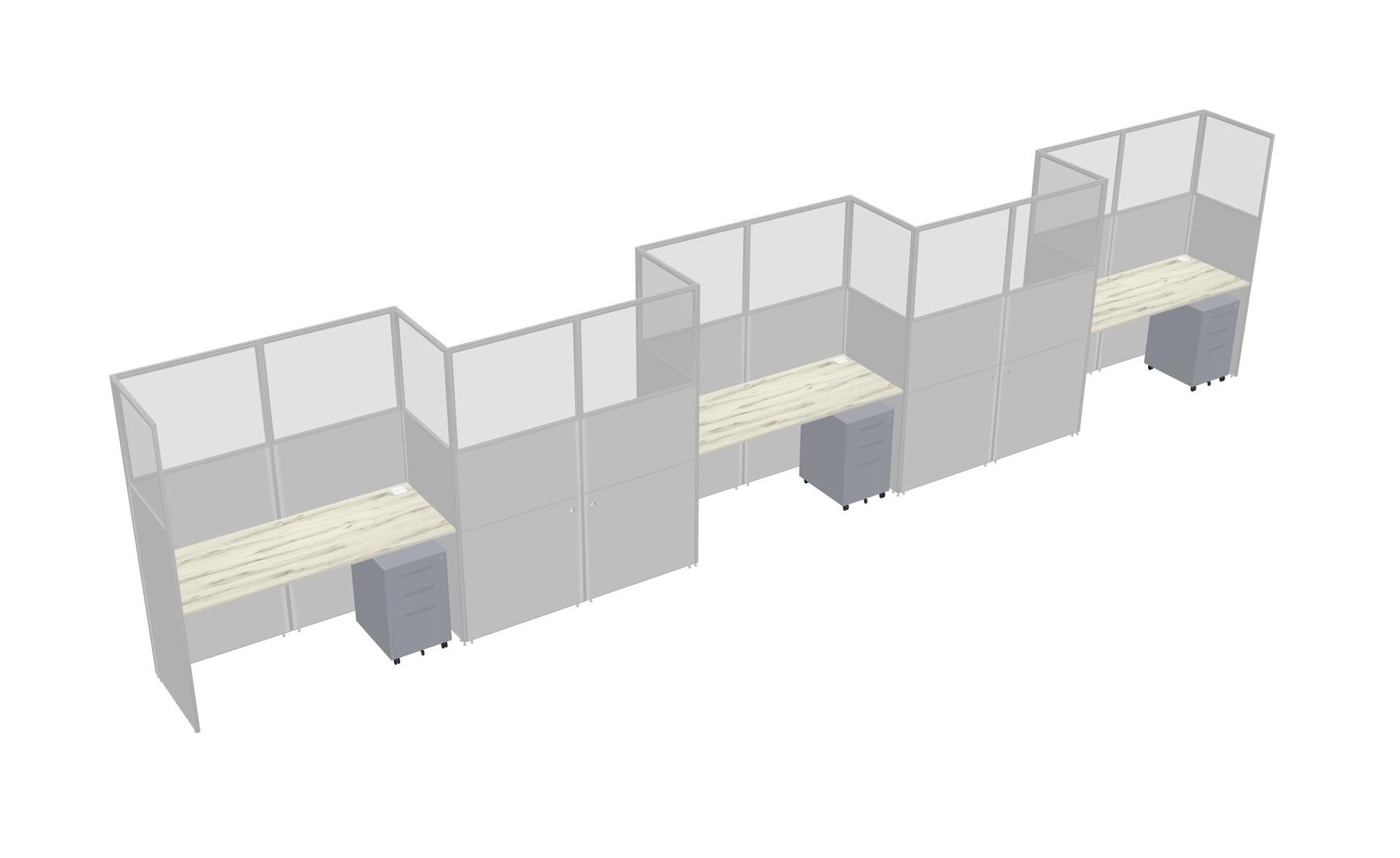 Heinne Holz Rectangular Cubicle Workstations For 5 - Zigzag Formation + Grey Metal Mobile Drawers