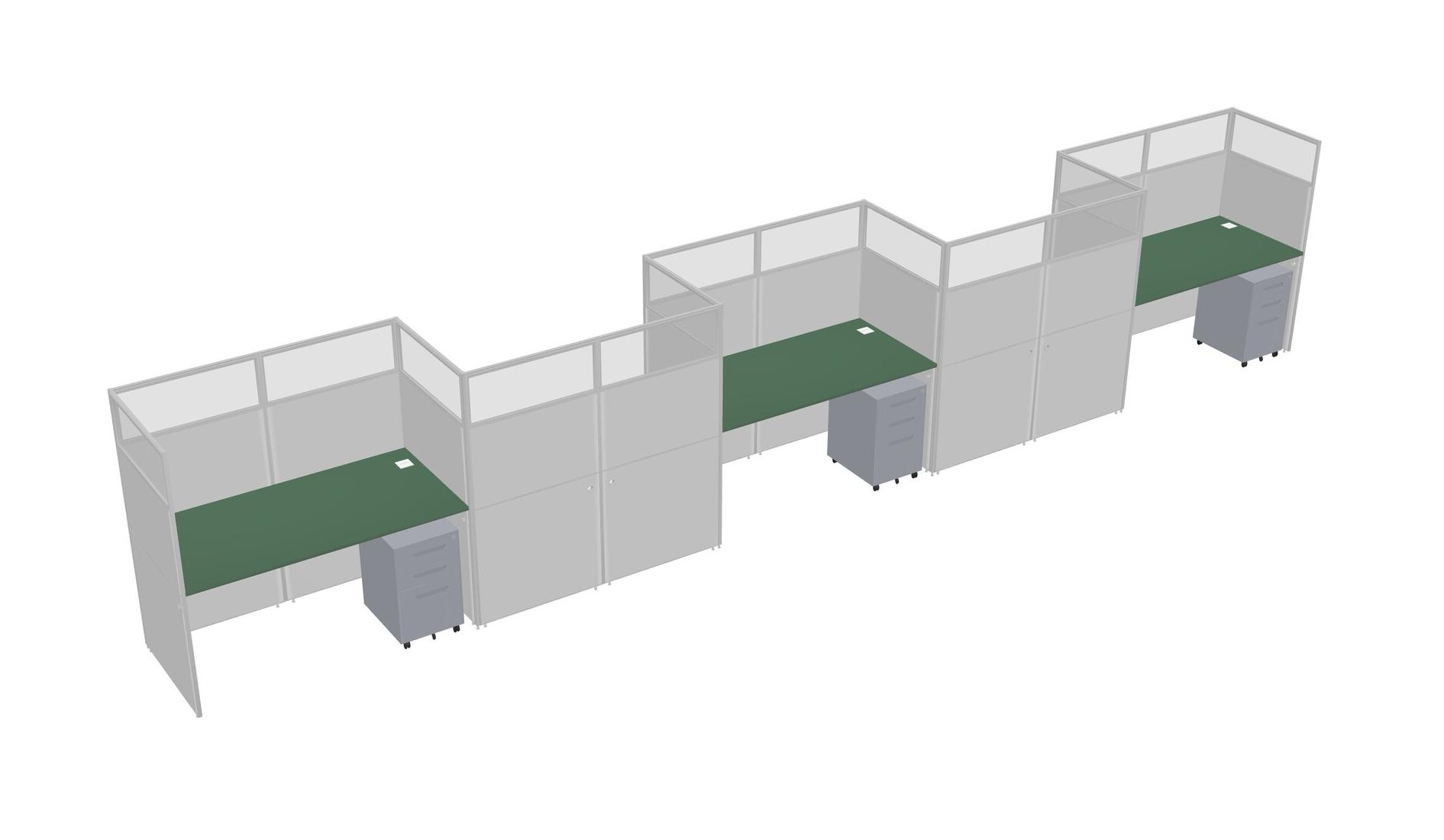 Green Rectangular Cubicle Workstations For 5 - Zigzag Formation + Grey Metal Mobile Drawers