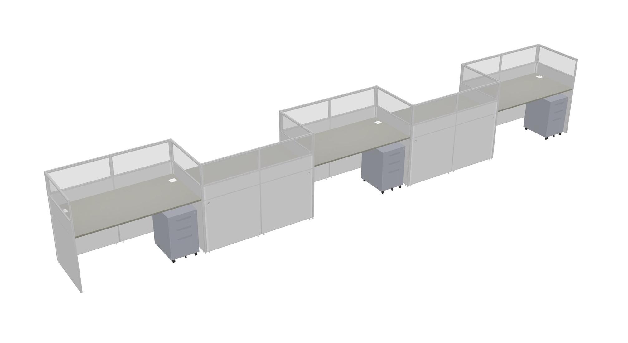 Grey Shadows Rectangular Cubicle Workstations For 5 - Zigzag Formation + Grey Metal Mobile Drawers