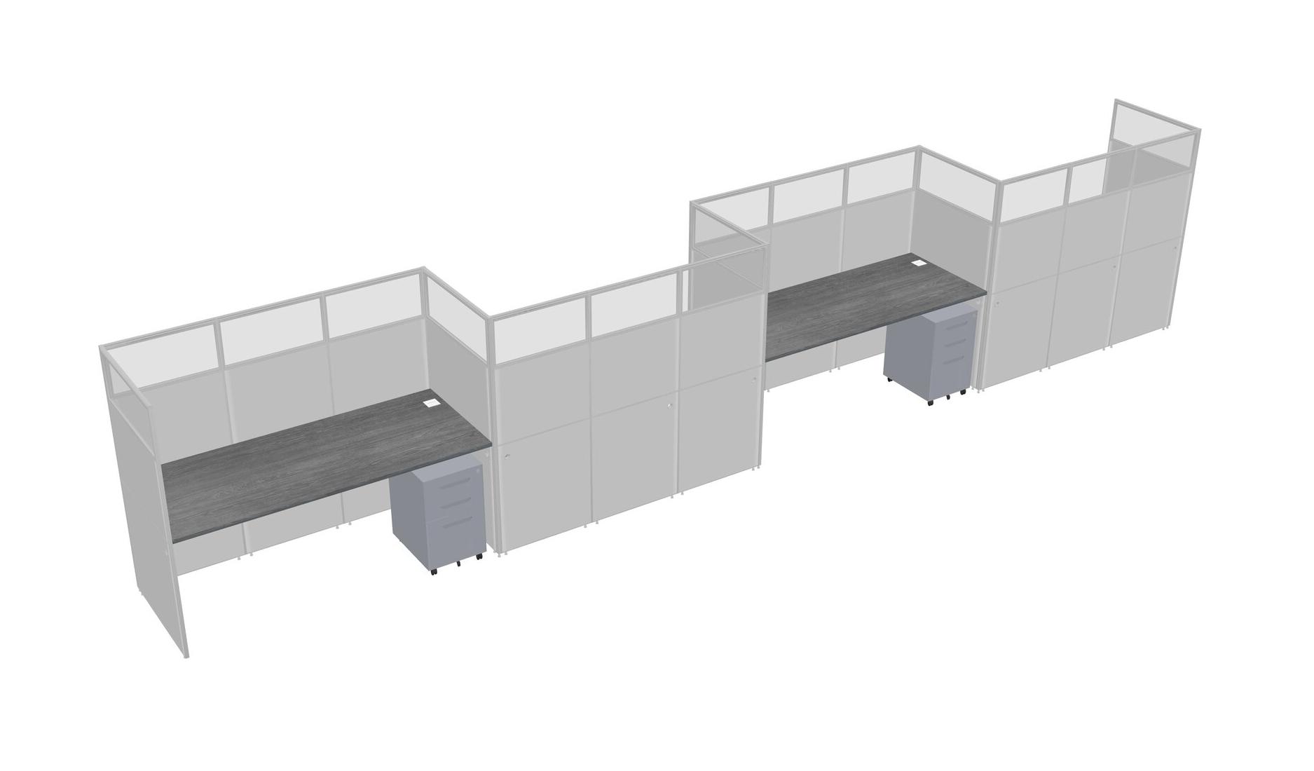 Grey Rectangular Cubicle Workstations For 4 - Zigzag Formation + Grey Metal Mobile Drawers
