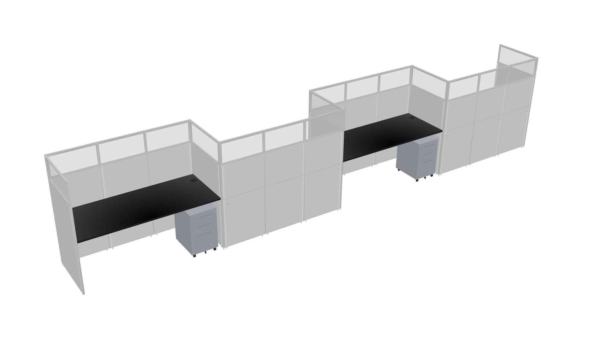 Black Rectangular Cubicle Workstations For 4 - Zigzag Formation + Grey Metal Mobile Drawers