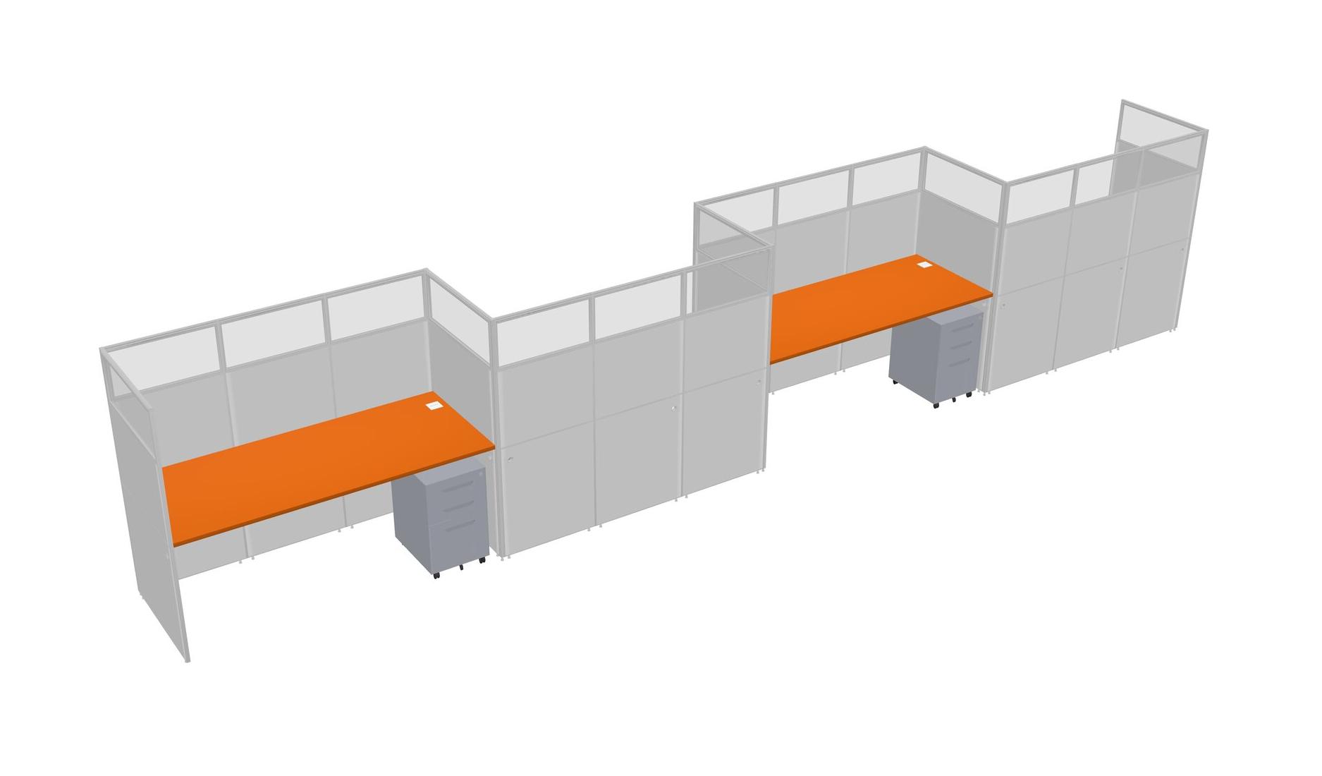 Orange Rectangular Cubicle Workstations For 4 - Zigzag Formation + Grey Metal Mobile Drawers