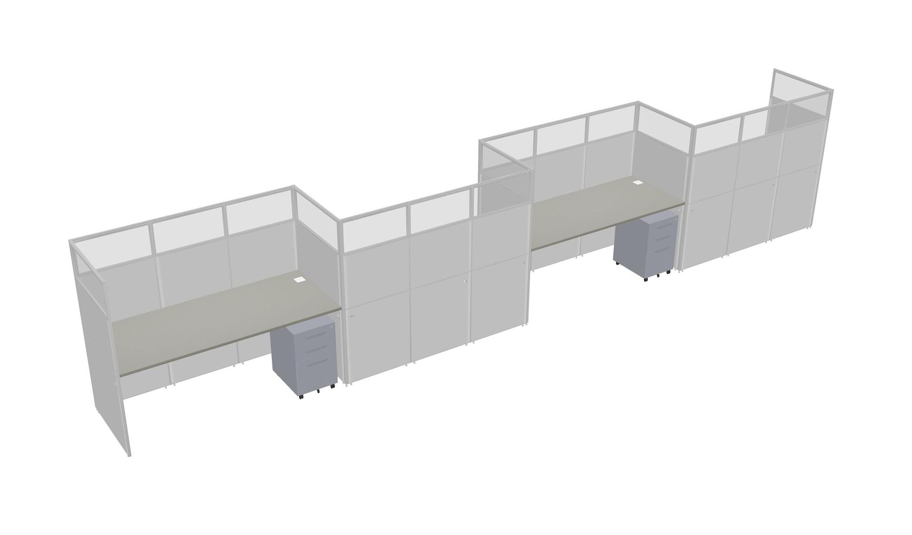 Grey Shadows Rectangular Cubicle Workstations For 4 - Zigzag Formation + Grey Metal Mobile Drawers