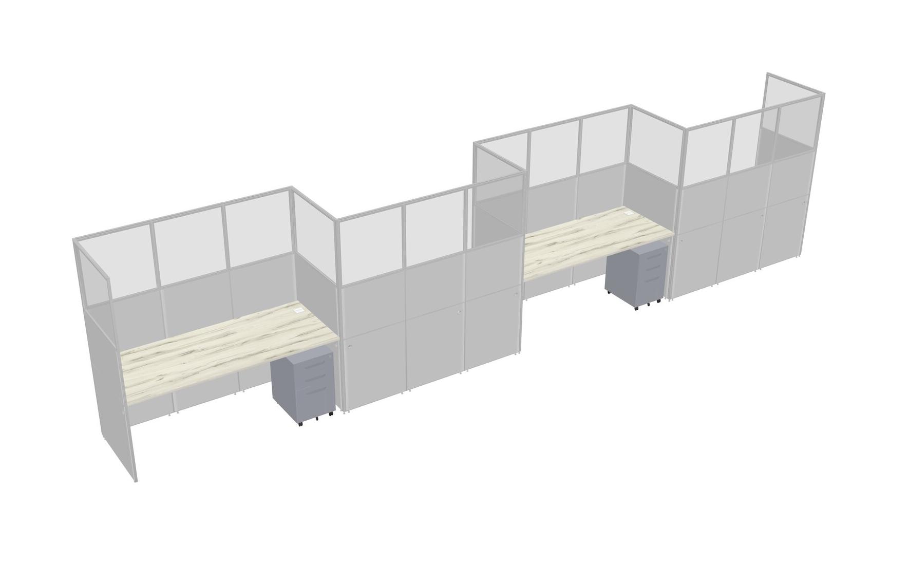 Heinne Holz Rectangular Cubicle Workstations For 4 - Zigzag Formation + Grey Metal Mobile Drawers